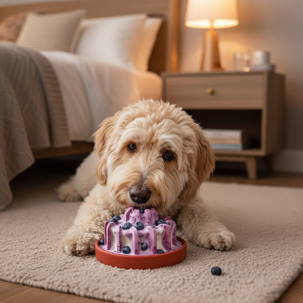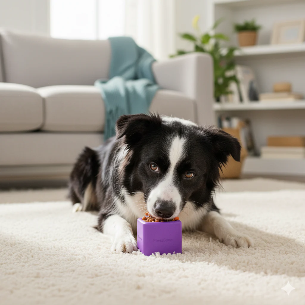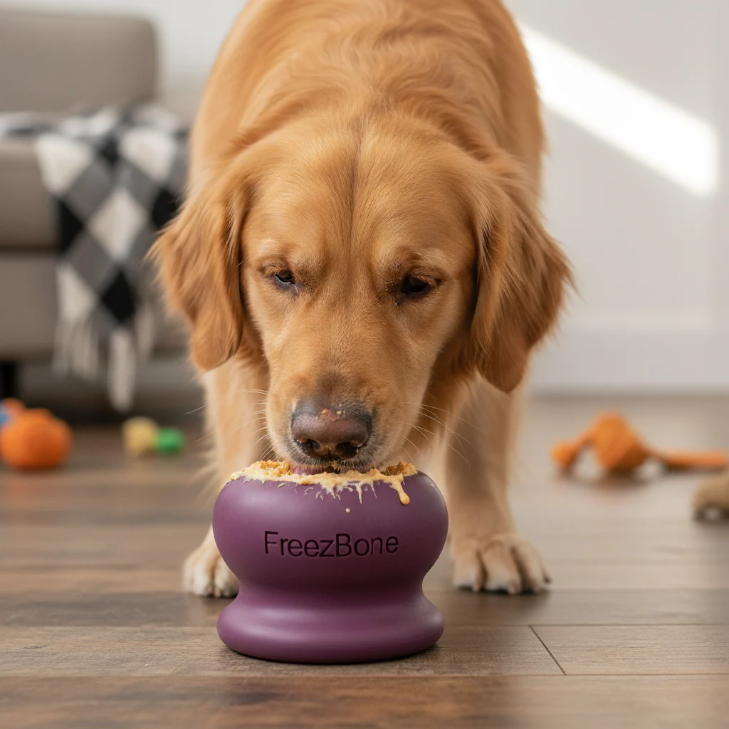 They still need exercise, mental stimulation, and a way to burn energy. Good news: You don’t need to brave the elements. Freezbone turns indoor time into tired, happy dogs.