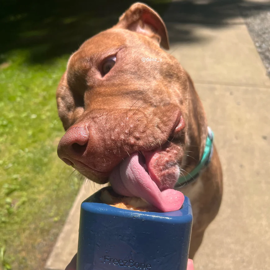 This is a big one. Many overweight dogs eat out of boredom, anxiety, or habit rather than hunger. Freezbone encourages repetitive licking action that releases calming endorphins, addressing the emotional reasons behind overeating.