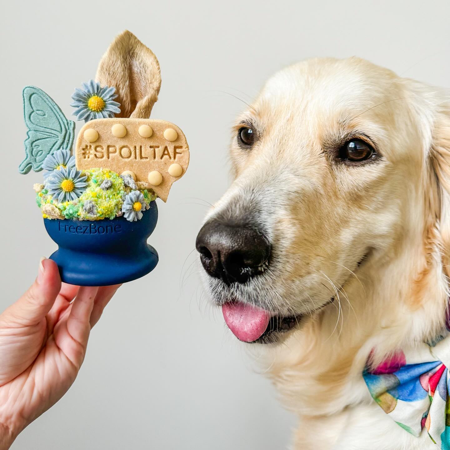 Nearly all of our Freezbone shapes (there’s a TON of awesome ones to choose from) come with two size options: small (suitable for dogs up to 60 lbs) and large (suitable for dogs up to 140 lbs). More likely than not, we have a Freezbone that’s perfect (and safe) for your specific kind of dog.
